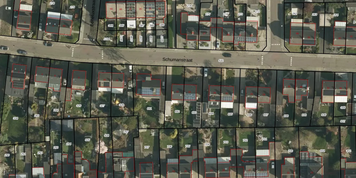 Gebruik de zoekbalk of klik op een perceel voor informatie over de adressen binnen dit perceel.