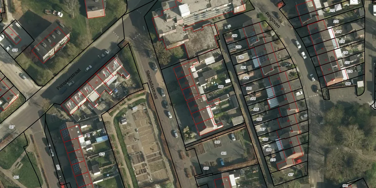 Sleinadastraat 13 is gelegen op kadastraal perceel LGF00D856. Deze kadastrale aanduiding is uniek en wordt gebruikt door het Kadaster om eigendomsrechten en andere zakelijke rechten vast te leggen. Het perceel maakt onderdeel uit van de kadastrale gemeente Landgraaf.