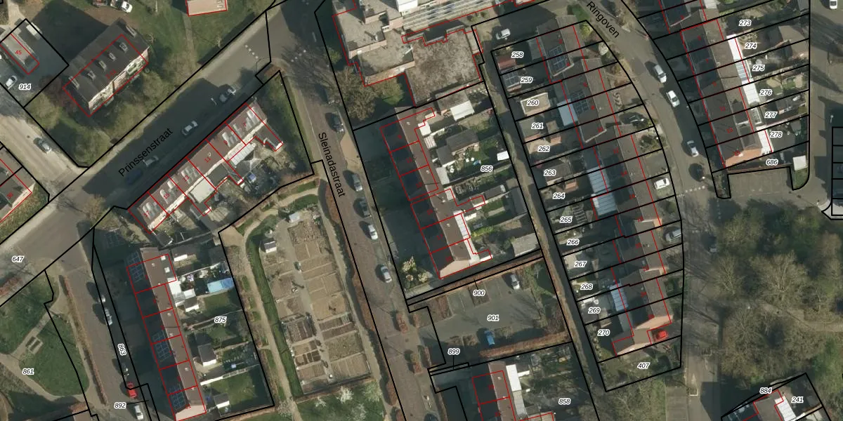 Het perceel waarop Sleinadastraat 15 staat heeft een oppervlakte van 1425 m². Dit is een zeer groot perceel. De perceeloppervlakte wordt geregistreerd door het Kadaster. Gedetailleerde informatie over de maten van dit perceel kunt u vinden in het rapport Kadastrale kaart met maatvoering van Sleinadastraat 15.
