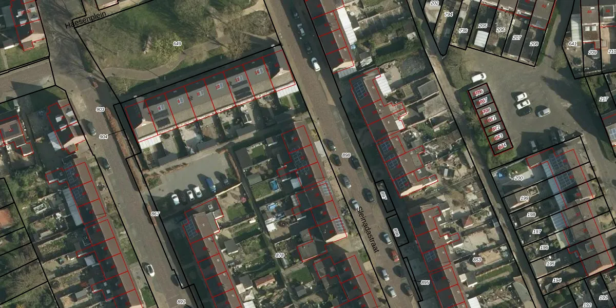 Het perceel waarop Sleinadastraat 32 staat heeft een oppervlakte van 7490 m². Dit is een zeer groot perceel. De perceeloppervlakte wordt geregistreerd door het Kadaster. Gedetailleerde informatie over de maten van dit perceel kunt u vinden in het rapport Kadastrale kaart met maatvoering van Sleinadastraat 32.