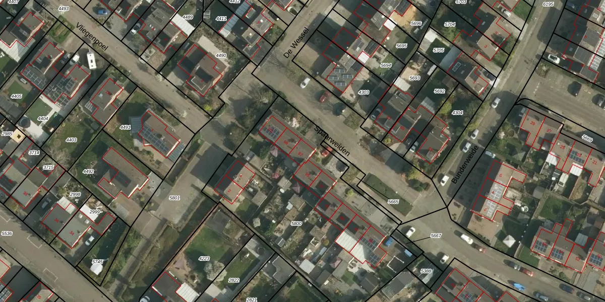 Het perceel waarop Spaarweiden 97 staat heeft een oppervlakte van 2388 m². Dit is een zeer groot perceel. De perceeloppervlakte wordt geregistreerd door het Kadaster. Gedetailleerde informatie over de maten van dit perceel kunt u vinden in het rapport Kadastrale kaart met maatvoering van Spaarweiden 97.