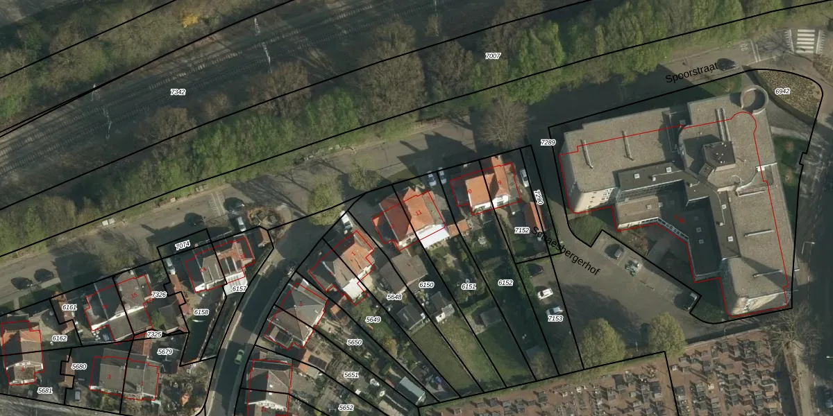 Spoorstraat 11 is gelegen op kadastraal perceel SBG01B6151. Deze kadastrale aanduiding is uniek en wordt gebruikt door het Kadaster om eigendomsrechten en andere zakelijke rechten vast te leggen. Het perceel maakt onderdeel uit van de kadastrale gemeente Schaesberg.