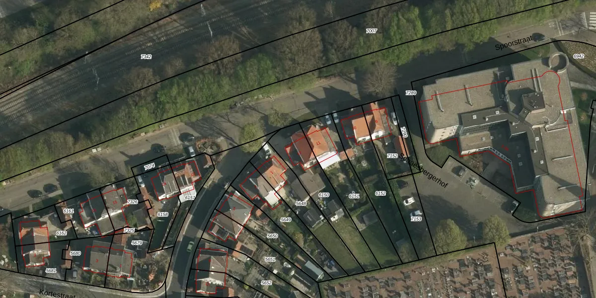 Spoorstraat 12 is gelegen op kadastraal perceel SBG01B6150. Deze kadastrale aanduiding is uniek en wordt gebruikt door het Kadaster om eigendomsrechten en andere zakelijke rechten vast te leggen. Het perceel maakt onderdeel uit van de kadastrale gemeente Schaesberg.