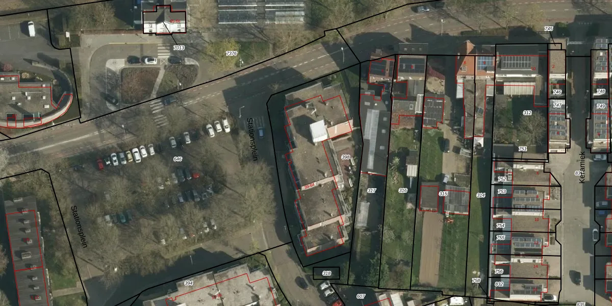 Het perceel waarop Stationsplein 48 staat heeft een oppervlakte van 1520 m². Dit is een zeer groot perceel. De perceeloppervlakte wordt geregistreerd door het Kadaster. Gedetailleerde informatie over de maten van dit perceel kunt u vinden in het rapport Kadastrale kaart met maatvoering van Stationsplein 48.