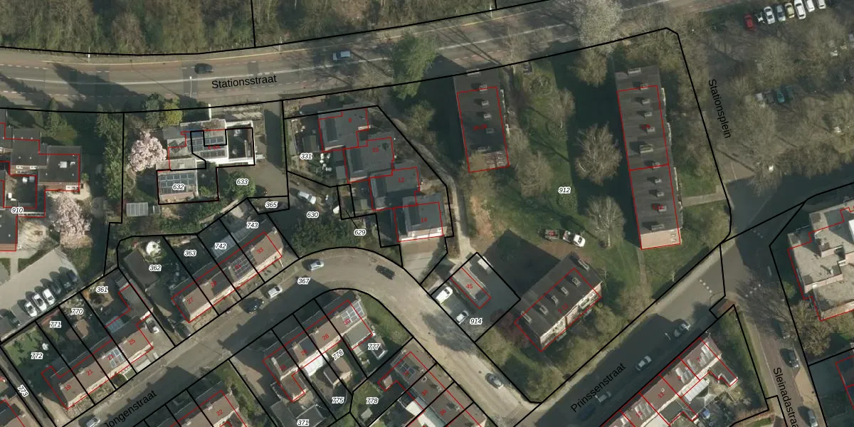 Het perceel waarop Stationsstraat 14 staat heeft een oppervlakte van 844 m². Dit is een groot perceel. De perceeloppervlakte wordt geregistreerd door het Kadaster. Gedetailleerde informatie over de maten van dit perceel kunt u vinden in het rapport Kadastrale kaart met maatvoering van Stationsstraat 14.
