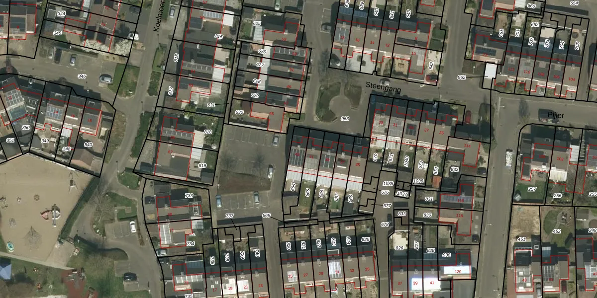Steengang 43 is gelegen op kadastraal perceel LGF00C664. Deze kadastrale aanduiding is uniek en wordt gebruikt door het Kadaster om eigendomsrechten en andere zakelijke rechten vast te leggen. Het perceel maakt onderdeel uit van de kadastrale gemeente Landgraaf.