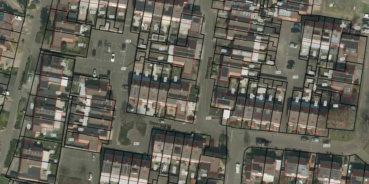 Gebruik de zoekbalk of klik op een perceel voor informatie over de adressen binnen dit perceel.