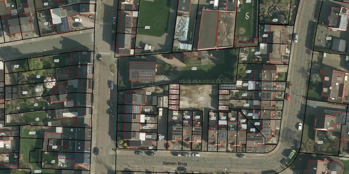 Gebruik de zoekbalk of klik op een perceel voor informatie over de adressen binnen dit perceel.
