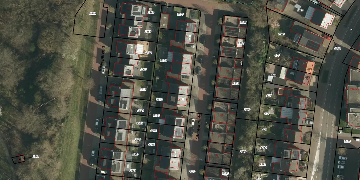 Streeperveld 33 is gelegen op kadastraal perceel SBG01E2371. Deze kadastrale aanduiding is uniek en wordt gebruikt door het Kadaster om eigendomsrechten en andere zakelijke rechten vast te leggen. Het perceel maakt onderdeel uit van de kadastrale gemeente Schaesberg.