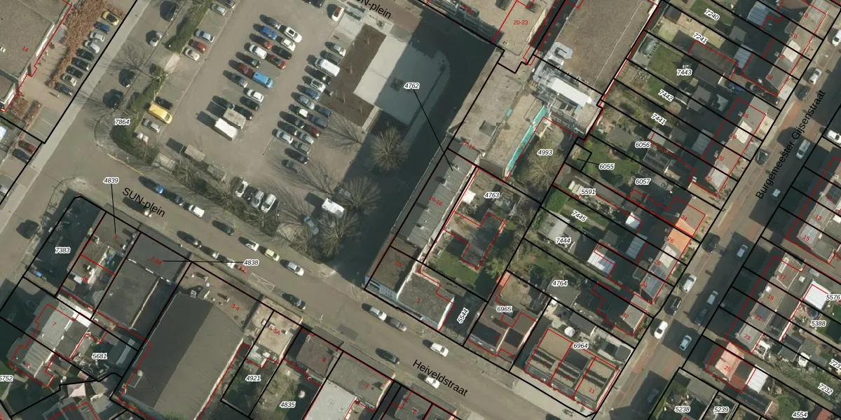 SUN-plein 13 is gelegen op kadastraal perceel NWH01B4762. Deze kadastrale aanduiding is uniek en wordt gebruikt door het Kadaster om eigendomsrechten en andere zakelijke rechten vast te leggen. Het perceel maakt onderdeel uit van de kadastrale gemeente Nieuwenhagen.