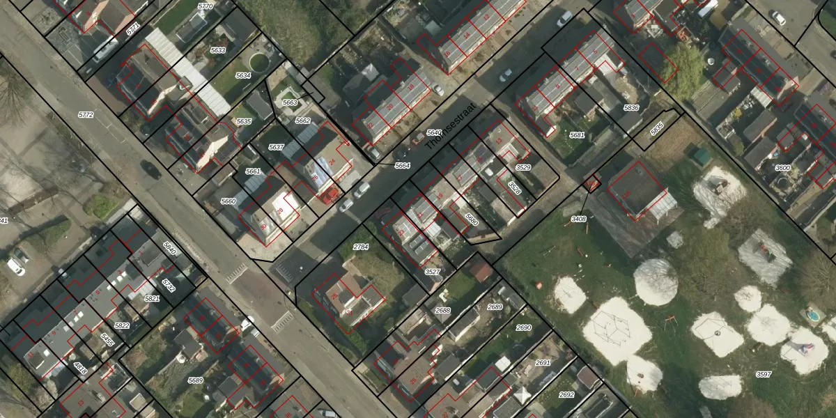Het perceel waarop Thornsestraat 21 staat heeft een oppervlakte van 961 m². Dit is een groot perceel. De perceeloppervlakte wordt geregistreerd door het Kadaster. Gedetailleerde informatie over de maten van dit perceel kunt u vinden in het rapport Kadastrale kaart met maatvoering van Thornsestraat 21.