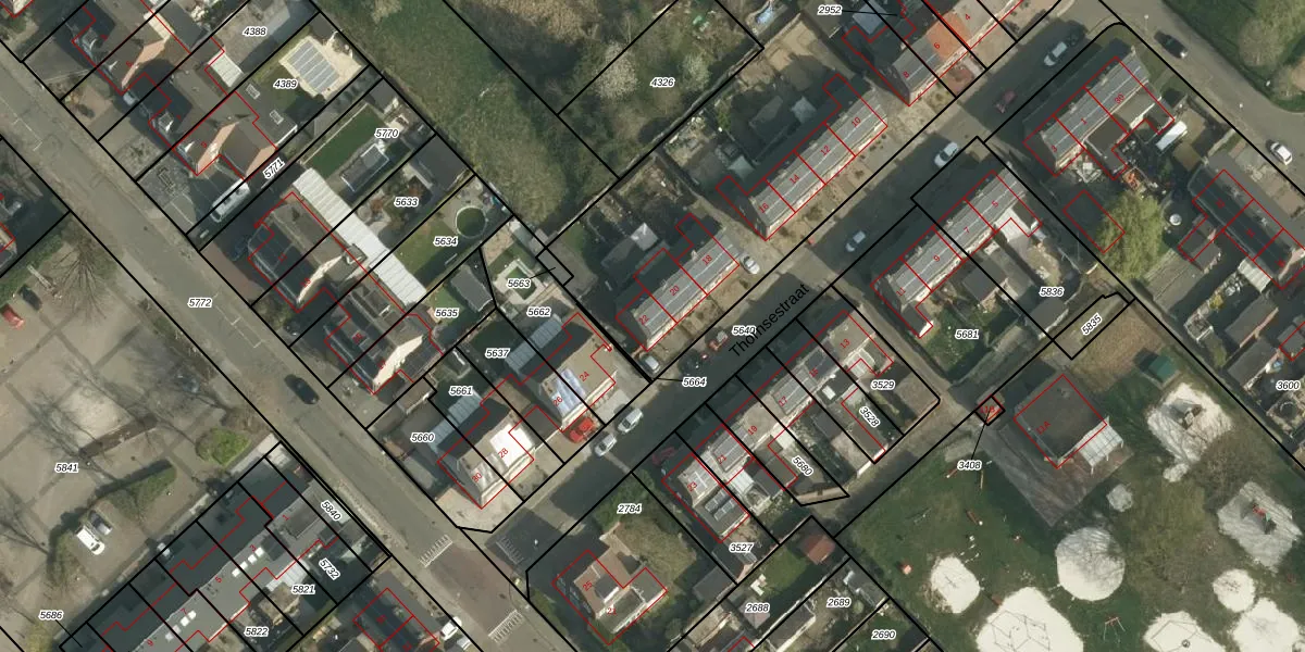 Het perceel waarop Thornsestraat 22 staat heeft een oppervlakte van 4447 m². Dit is een zeer groot perceel. De perceeloppervlakte wordt geregistreerd door het Kadaster. Gedetailleerde informatie over de maten van dit perceel kunt u vinden in het rapport Kadastrale kaart met maatvoering van Thornsestraat 22.