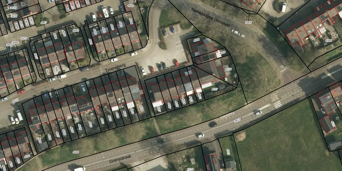 Het perceel waarop Troereberg 15 staat heeft een oppervlakte van 100 m². Dit is een middelgroot perceel. De perceeloppervlakte wordt geregistreerd door het Kadaster. Gedetailleerde informatie over de maten van dit perceel kunt u vinden in het rapport Kadastrale kaart met maatvoering van Troereberg 15.