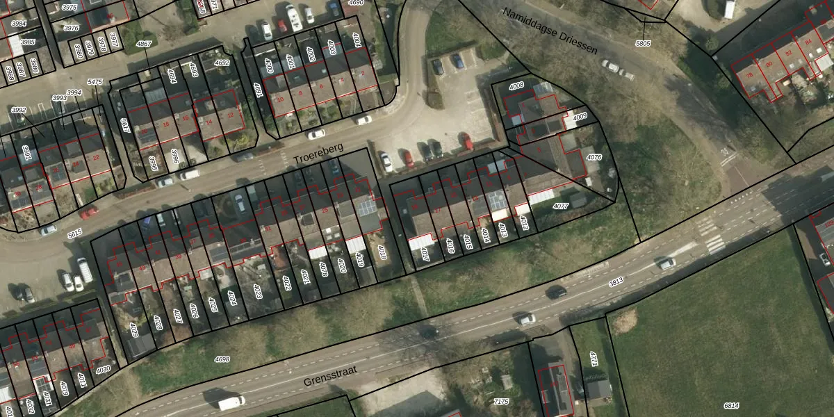 Gebruik de zoekbalk of klik op een perceel voor informatie over de adressen binnen dit perceel.
