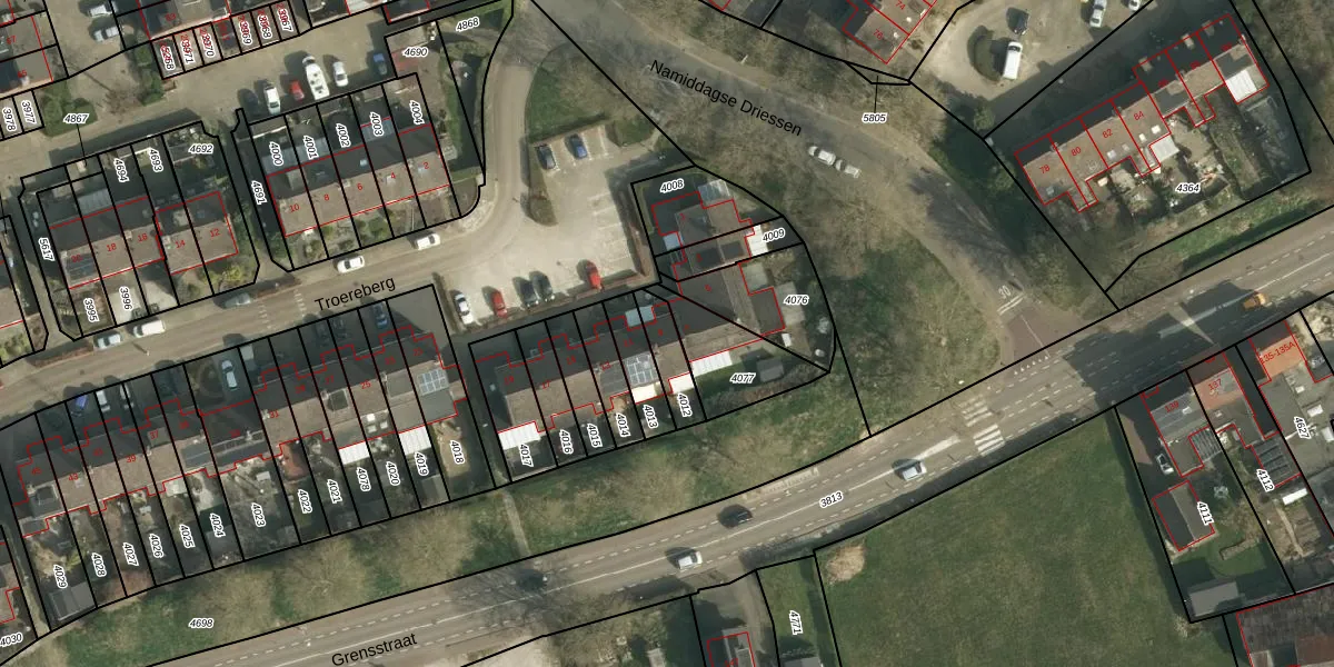 Het perceel waarop Troereberg 9 staat heeft een oppervlakte van 99 m². Dit is een klein perceel. De perceeloppervlakte wordt geregistreerd door het Kadaster. Gedetailleerde informatie over de maten van dit perceel kunt u vinden in het rapport Kadastrale kaart met maatvoering van Troereberg 9.