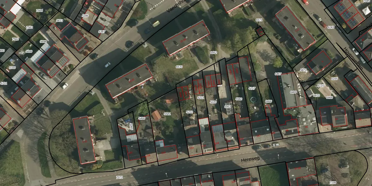 Het perceel waarop Vaechshof 2007 staat heeft een oppervlakte van 345 m². Dit is een groot perceel. De perceeloppervlakte wordt geregistreerd door het Kadaster. Gedetailleerde informatie over de maten van dit perceel kunt u vinden in het rapport Kadastrale kaart met maatvoering van Vaechshof 2007.
