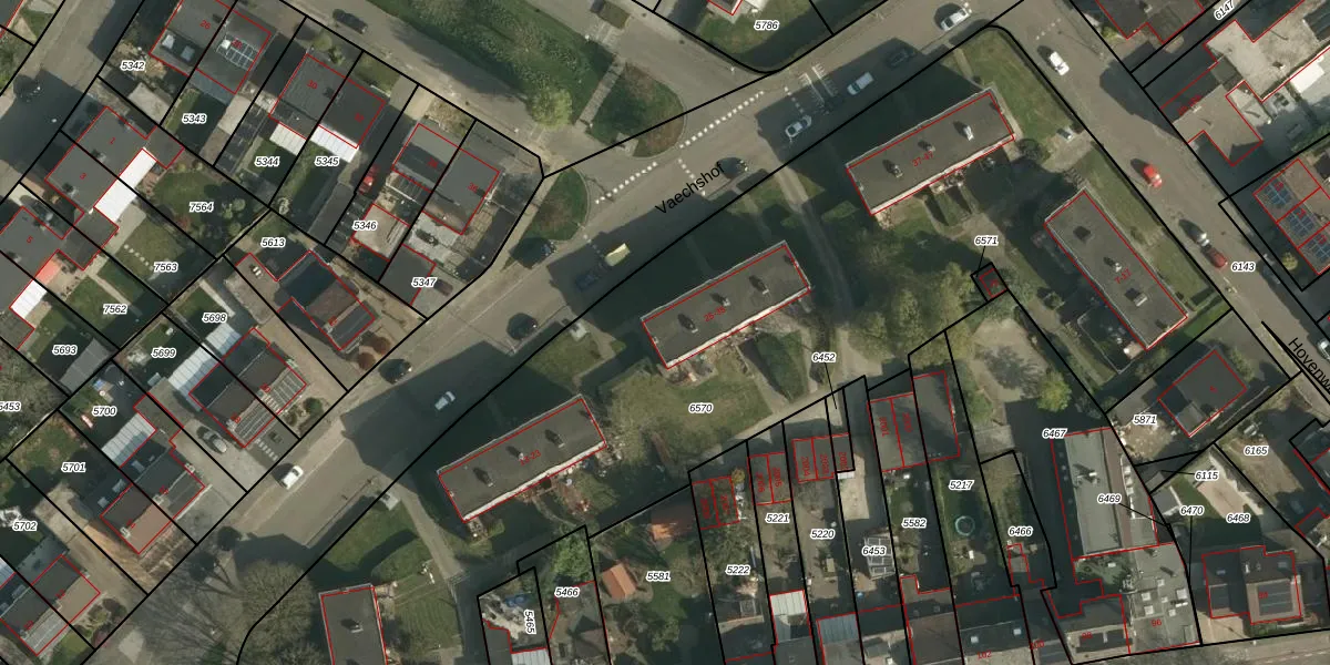 Het perceel waarop Vaechshof 25 staat heeft een oppervlakte van 5350 m². Dit is een zeer groot perceel. De perceeloppervlakte wordt geregistreerd door het Kadaster. Gedetailleerde informatie over de maten van dit perceel kunt u vinden in het rapport Kadastrale kaart met maatvoering van Vaechshof 25.