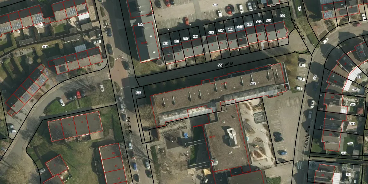 Het perceel waarop Valder 24 staat heeft een oppervlakte van 2615 m². Dit is een zeer groot perceel. De perceeloppervlakte wordt geregistreerd door het Kadaster. Gedetailleerde informatie over de maten van dit perceel kunt u vinden in het rapport Kadastrale kaart met maatvoering van Valder 24.