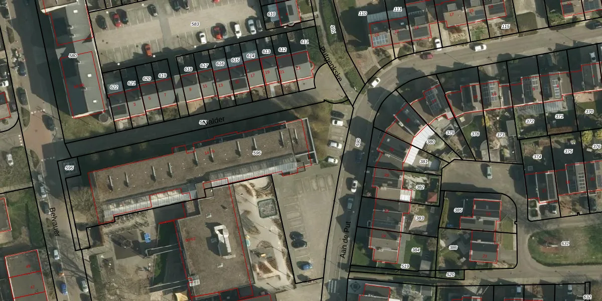 Het perceel waarop Valder 64 staat heeft een oppervlakte van 2615 m². Dit is een zeer groot perceel. De perceeloppervlakte wordt geregistreerd door het Kadaster. Gedetailleerde informatie over de maten van dit perceel kunt u vinden in het rapport Kadastrale kaart met maatvoering van Valder 64.