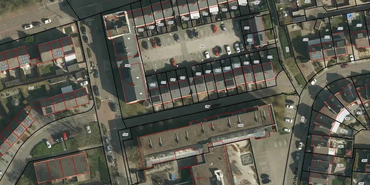 Gebruik de zoekbalk of klik op een perceel voor informatie over de adressen binnen dit perceel.