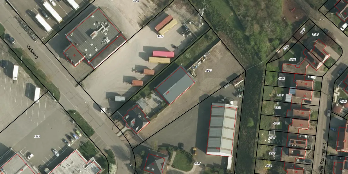 Valkweg 24-A is gelegen op kadastraal perceel UBH00A4937. Deze kadastrale aanduiding is uniek en wordt gebruikt door het Kadaster om eigendomsrechten en andere zakelijke rechten vast te leggen. Het perceel maakt onderdeel uit van de kadastrale gemeente Ubach over Worms.
