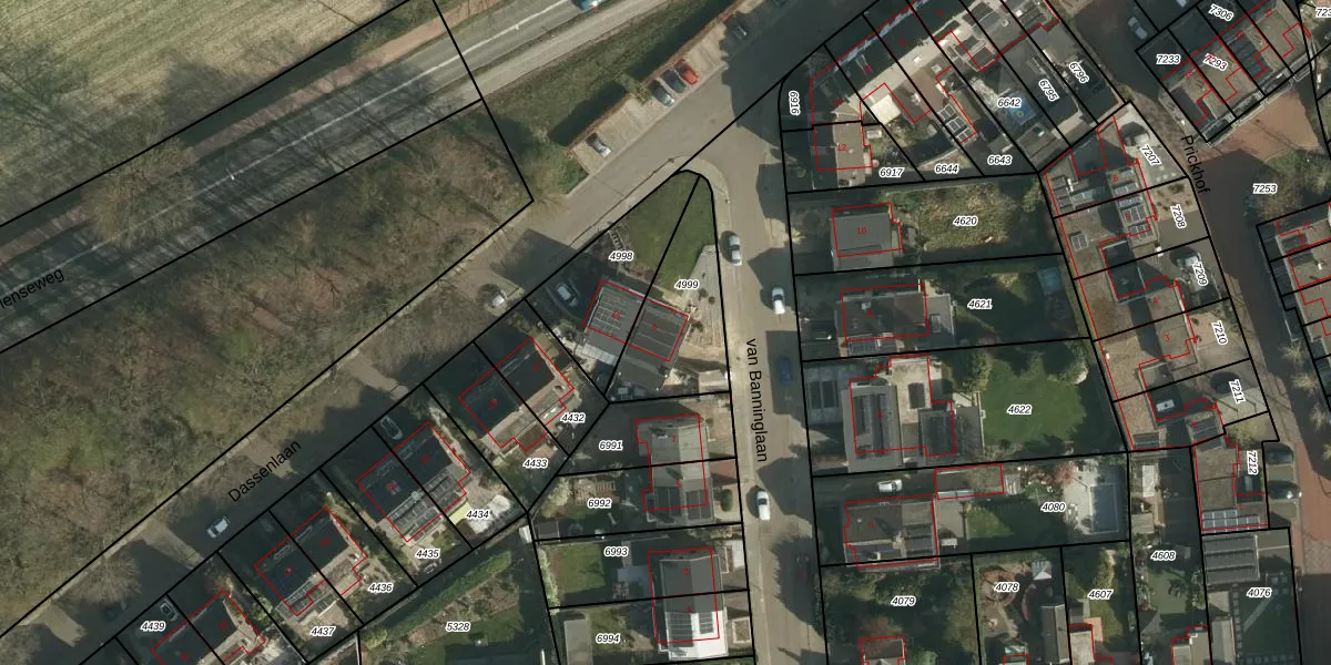 van Banninglaan 9 is gelegen op kadastraal perceel SBG01B4999. Deze kadastrale aanduiding is uniek en wordt gebruikt door het Kadaster om eigendomsrechten en andere zakelijke rechten vast te leggen. Het perceel maakt onderdeel uit van de kadastrale gemeente Schaesberg.