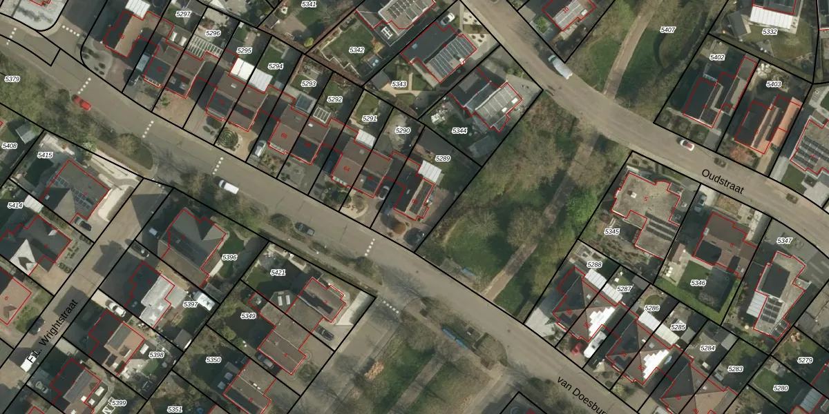 Het perceel waarop van Doesburglaan 60 staat heeft een oppervlakte van 396 m². Dit is een groot perceel. De perceeloppervlakte wordt geregistreerd door het Kadaster. Gedetailleerde informatie over de maten van dit perceel kunt u vinden in het rapport Kadastrale kaart met maatvoering van van Doesburglaan 60.