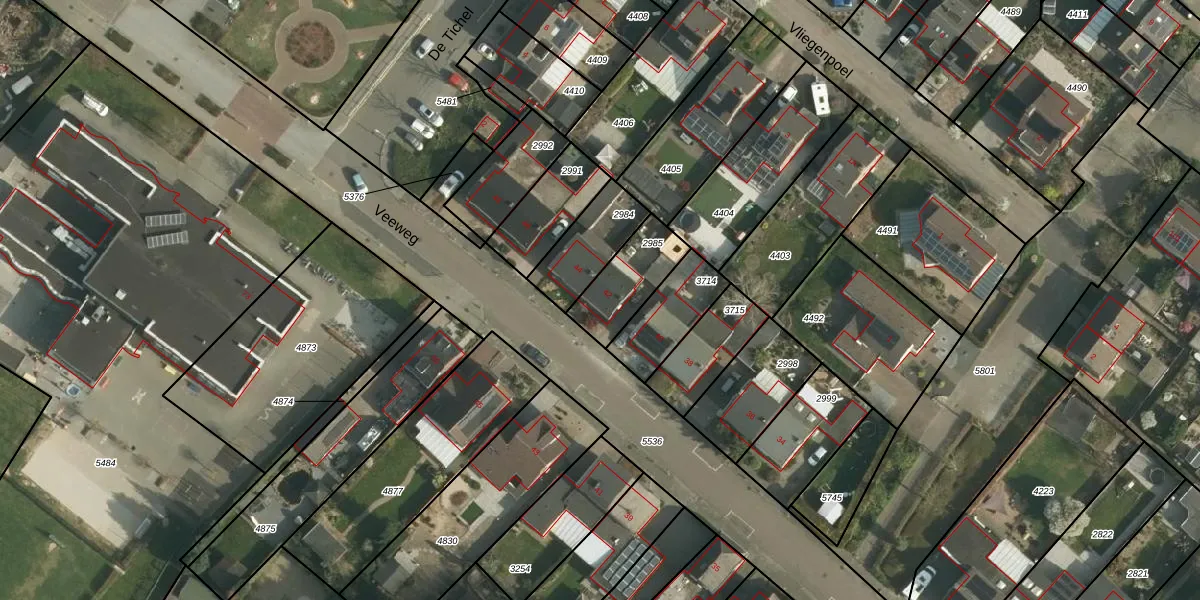 Gebruik de zoekbalk of klik op een perceel voor informatie over de adressen binnen dit perceel.