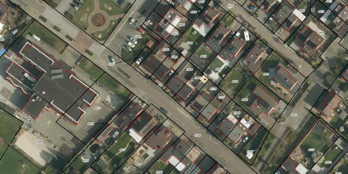Gebruik de zoekbalk of klik op een perceel voor informatie over de adressen binnen dit perceel.