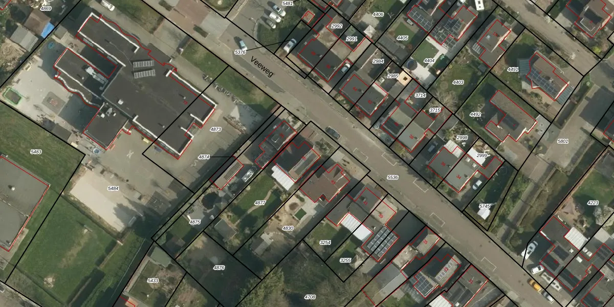 Het perceel waarop Veeweg 45 staat heeft een oppervlakte van 640 m². Dit is een groot perceel. De perceeloppervlakte wordt geregistreerd door het Kadaster. Gedetailleerde informatie over de maten van dit perceel kunt u vinden in het rapport Kadastrale kaart met maatvoering van Veeweg 45.