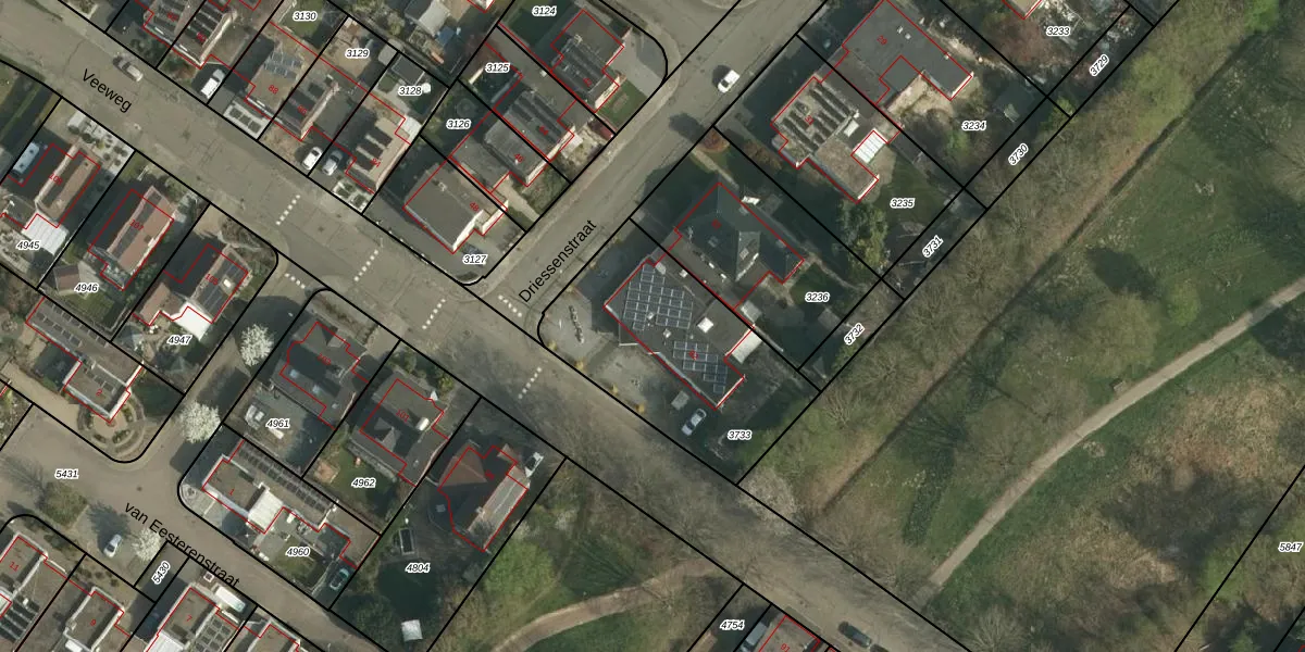 Gebruik de zoekbalk of klik op een perceel voor informatie over de adressen binnen dit perceel.