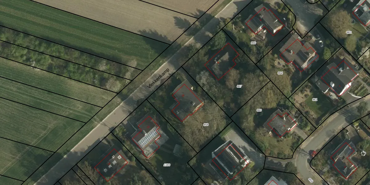 Vlekkenkamp 10 is gelegen op kadastraal perceel NWH01C858. Deze kadastrale aanduiding is uniek en wordt gebruikt door het Kadaster om eigendomsrechten en andere zakelijke rechten vast te leggen. Het perceel maakt onderdeel uit van de kadastrale gemeente Nieuwenhagen.