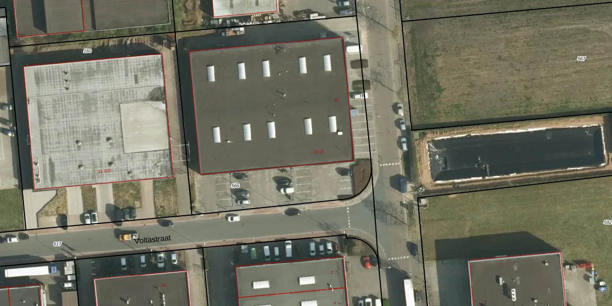 Voltastraat 19 is gelegen op kadastraal perceel LGF00C566. Deze kadastrale aanduiding is uniek en wordt gebruikt door het Kadaster om eigendomsrechten en andere zakelijke rechten vast te leggen. Het perceel maakt onderdeel uit van de kadastrale gemeente Landgraaf.