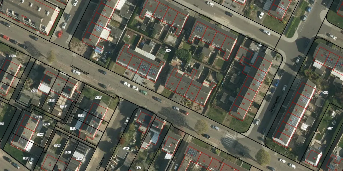 Het perceel waarop Voortstraat 42 staat heeft een oppervlakte van 6113 m². Dit is een zeer groot perceel. De perceeloppervlakte wordt geregistreerd door het Kadaster. Gedetailleerde informatie over de maten van dit perceel kunt u vinden in het rapport Kadastrale kaart met maatvoering van Voortstraat 42.