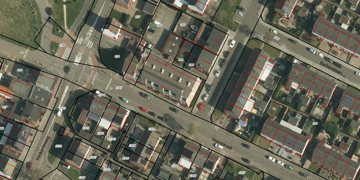 Het perceel waarop Voortstraat 62 staat heeft een oppervlakte van 1201 m². Dit is een zeer groot perceel. De perceeloppervlakte wordt geregistreerd door het Kadaster. Gedetailleerde informatie over de maten van dit perceel kunt u vinden in het rapport Kadastrale kaart met maatvoering van Voortstraat 62.
