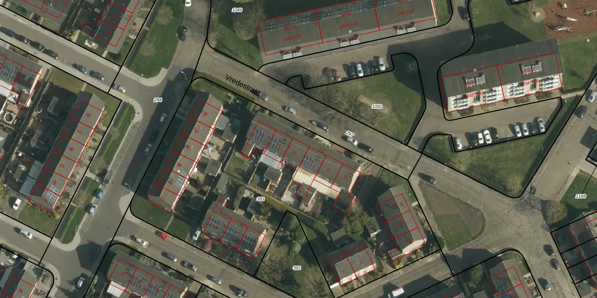 Het perceel waarop Vredestraat 21 staat heeft een oppervlakte van 4070 m². Dit is een zeer groot perceel. De perceeloppervlakte wordt geregistreerd door het Kadaster. Gedetailleerde informatie over de maten van dit perceel kunt u vinden in het rapport Kadastrale kaart met maatvoering van Vredestraat 21.