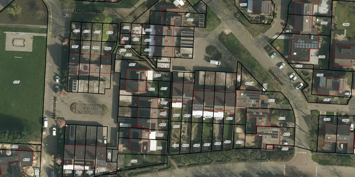 Weegbree 32 is gelegen op kadastraal perceel UBH00B4018. Deze kadastrale aanduiding is uniek en wordt gebruikt door het Kadaster om eigendomsrechten en andere zakelijke rechten vast te leggen. Het perceel maakt onderdeel uit van de kadastrale gemeente Ubach over Worms.