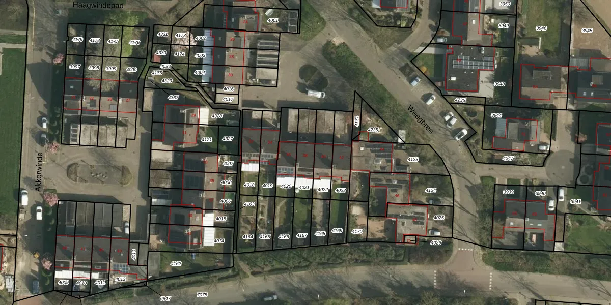 Weegbree 38 is gelegen op kadastraal perceel UBH00B4021. Deze kadastrale aanduiding is uniek en wordt gebruikt door het Kadaster om eigendomsrechten en andere zakelijke rechten vast te leggen. Het perceel maakt onderdeel uit van de kadastrale gemeente Ubach over Worms.