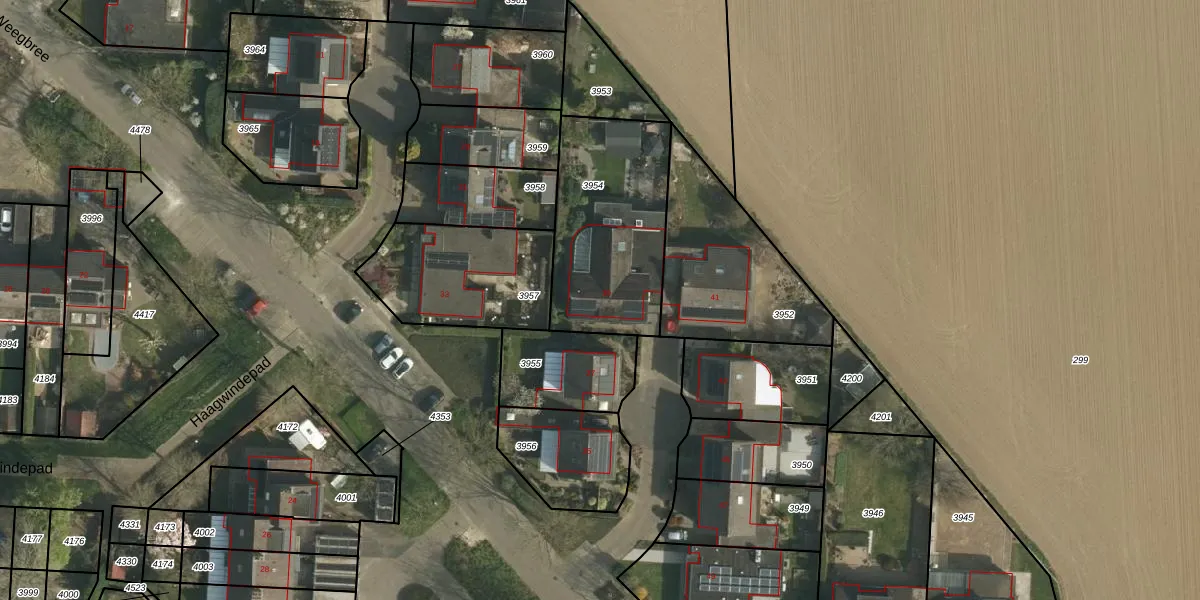 Het perceel waarop Weegbree 39 staat heeft een oppervlakte van 662 m². Dit is een groot perceel. De perceeloppervlakte wordt geregistreerd door het Kadaster. Gedetailleerde informatie over de maten van dit perceel kunt u vinden in het rapport Kadastrale kaart met maatvoering van Weegbree 39.