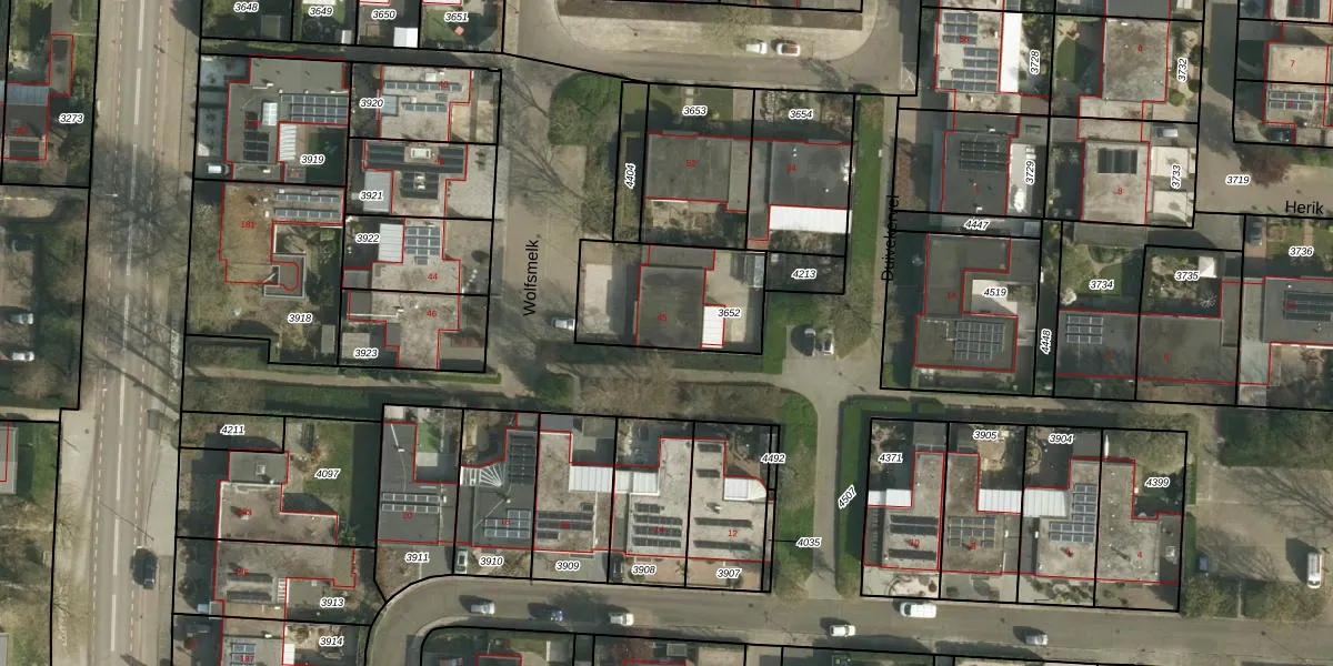 Het perceel waarop Wolfsmelk 45 staat heeft een oppervlakte van 430 m². Dit is een groot perceel. De perceeloppervlakte wordt geregistreerd door het Kadaster. Gedetailleerde informatie over de maten van dit perceel kunt u vinden in het rapport Kadastrale kaart met maatvoering van Wolfsmelk 45.