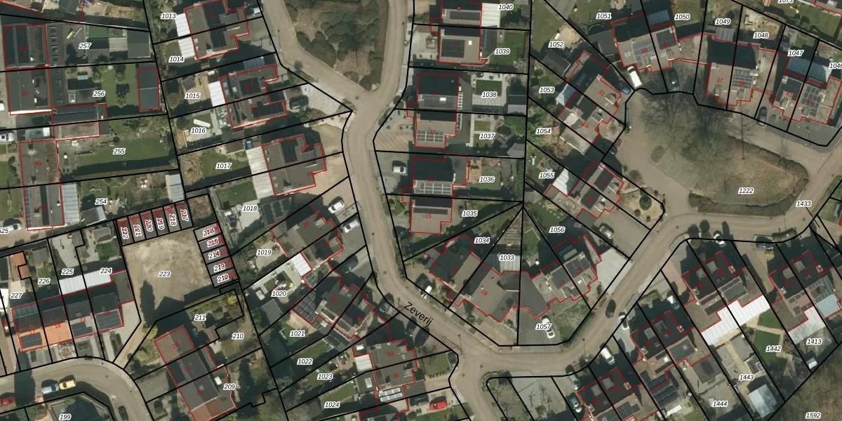Zeverij 15 is gelegen op kadastraal perceel LGF00B1035. Deze kadastrale aanduiding is uniek en wordt gebruikt door het Kadaster om eigendomsrechten en andere zakelijke rechten vast te leggen. Het perceel maakt onderdeel uit van de kadastrale gemeente Landgraaf.