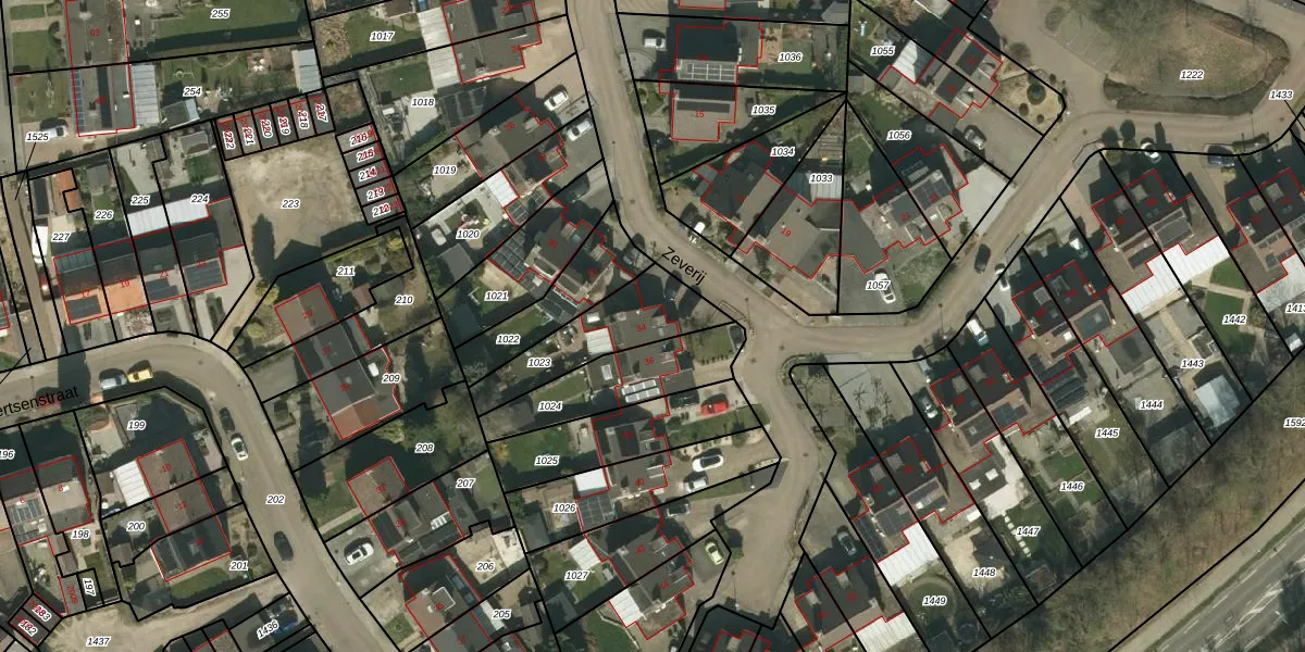 Zeverij 34 is gelegen op kadastraal perceel LGF00B1023. Deze kadastrale aanduiding is uniek en wordt gebruikt door het Kadaster om eigendomsrechten en andere zakelijke rechten vast te leggen. Het perceel maakt onderdeel uit van de kadastrale gemeente Landgraaf.