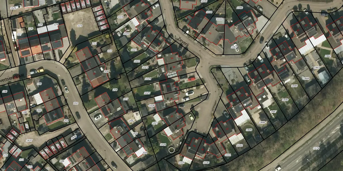 Gebruik de zoekbalk of klik op een perceel voor informatie over de adressen binnen dit perceel.