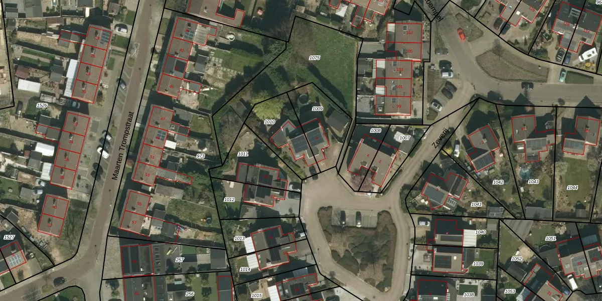 Gebruik de zoekbalk of klik op een perceel voor informatie over de adressen binnen dit perceel.
