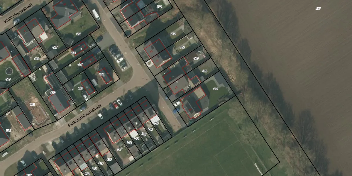 Het adres ligt op het perceel WRJ00-M-801, dat zich in de kadastrale gemeente Wanroij bevindt. De gemiddelde perceelgrootte in Wanroij is 1,1 ha. Dit perceel is kleiner: de perceeloppervlakte bedraagt 293 m². Het grootste perceel in de kadastrale gemeente is 95,7 ha. Het kleinste perceel heeft een oppervlakte van 0 m². Op het perceel bevinden zich geen andere adressen. De laatste wijziging in het de Basisregistratie Kadaster (BRK) was op 16-02-2022.