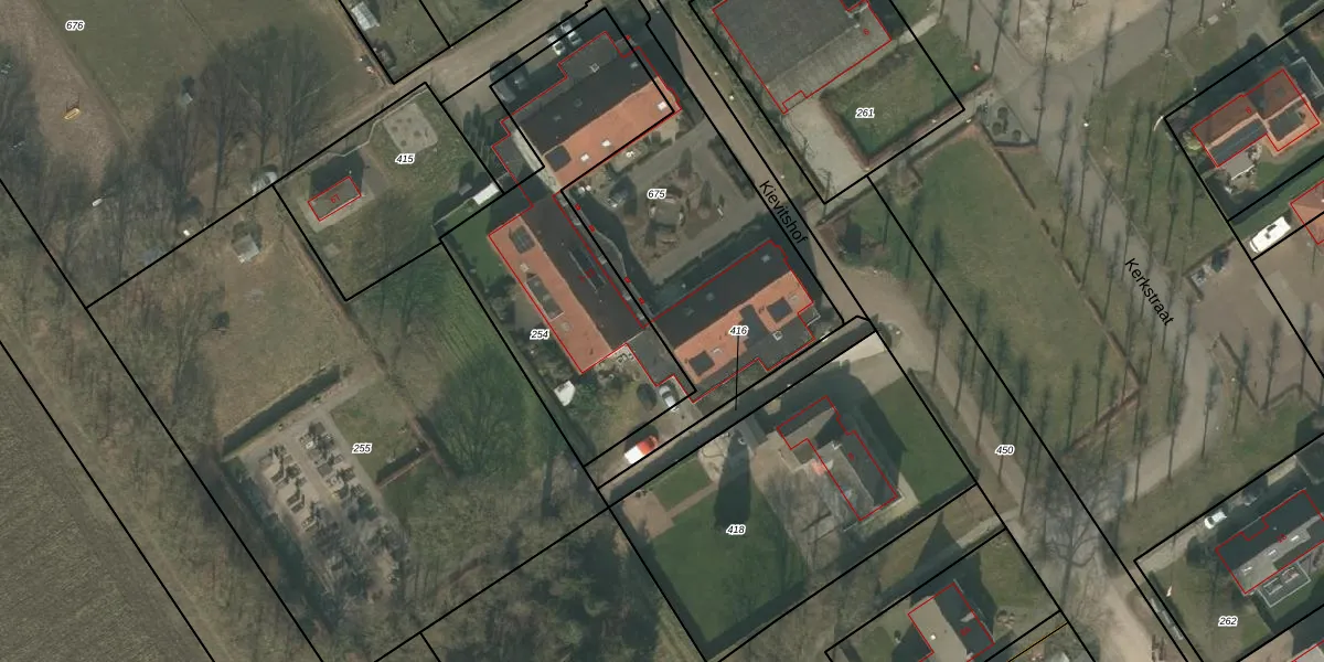 Het adres ligt op het perceel WRJ00-M-675, dat zich in de kadastrale gemeente Wanroij bevindt. De gemiddelde perceelgrootte in Wanroij is 1,1 ha. Dit perceel is kleiner: de perceeloppervlakte bedraagt 1342 m². Het kleinste perceel in de kadastrale gemeente is 0 m² groot. De grootste perceeloppervlakte is 95,7 ha. Er zijn 3 adressen aanwezig op het perceel. In de Basisregistratie Kadaster (BRK) werden de grenzen van het perceel geregistreerd op 21-12-2006.