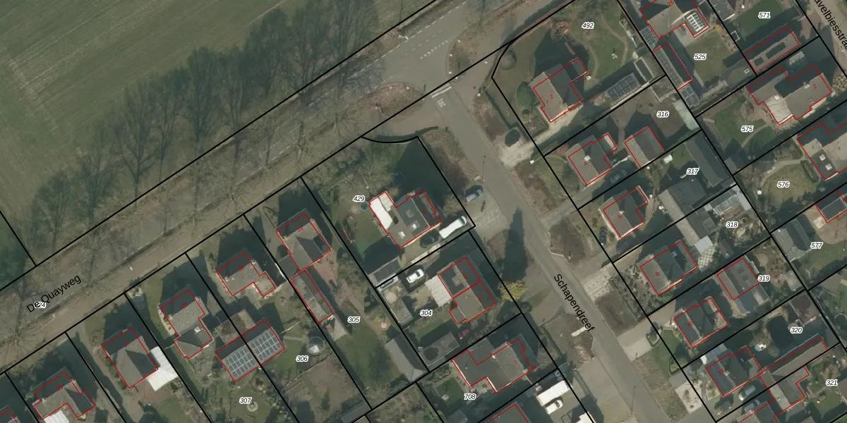 Schapendreef 1 is gelegen op kadastraal perceel WRJ00M429. Deze kadastrale aanduiding is uniek en wordt gebruikt door het Kadaster om eigendomsrechten en andere zakelijke rechten vast te leggen. Het perceel maakt onderdeel uit van de kadastrale gemeente Wanroij.