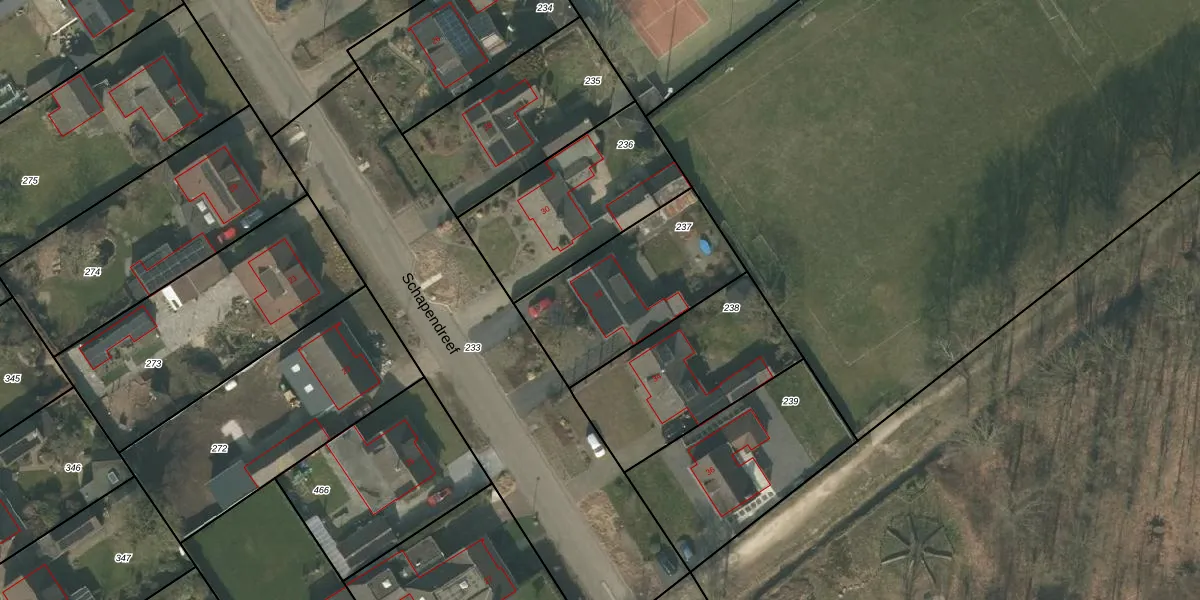 Schapendreef 32 is gelegen op kadastraal perceel WRJ00M237. Deze kadastrale aanduiding is uniek en wordt gebruikt door het Kadaster om eigendomsrechten en andere zakelijke rechten vast te leggen. Het perceel maakt onderdeel uit van de kadastrale gemeente Wanroij.