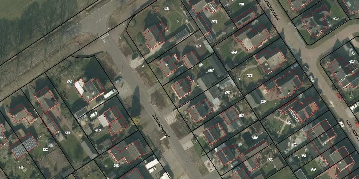 Gebruik de zoekbalk of klik op een perceel voor informatie over de adressen binnen dit perceel.