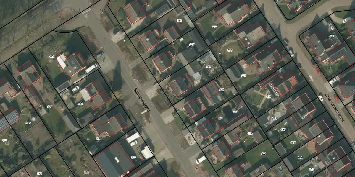 Schapendreef 8 is gelegen op kadastraal perceel WRJ00M318. Deze kadastrale aanduiding is uniek en wordt gebruikt door het Kadaster om eigendomsrechten en andere zakelijke rechten vast te leggen. Het perceel maakt onderdeel uit van de kadastrale gemeente Wanroij.